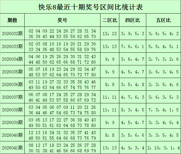 福彩快乐8第2026041期开奖回顾:08 12 17 18 23 24 25 26 27 28 30 31 38 41 46 56 66 68 69 79,其中奖号二区比为7:13,四区比为4:9:3:4,五区比为2:10:3:1:4,除2余数比为8:12,除4余数比为6:4:6:4,除5余数比为2:6:3:6:3。