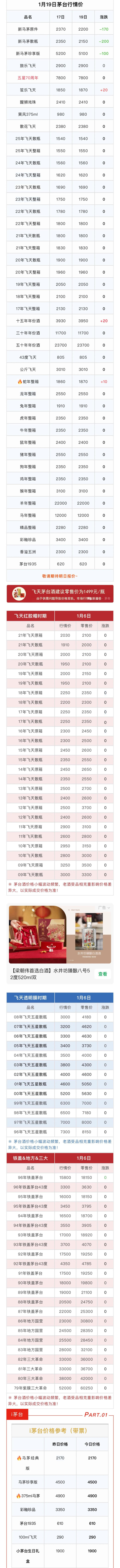 开云app 1月19日茅台市场行情价。