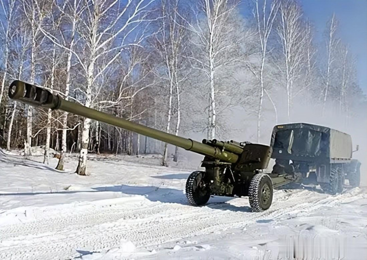 59式130毫米加农炮的射程高达28公里,代价是机动性太差。仅仅火炮的行军长度就有12米,加上重型牵引车就要有接近20米长度,火炮自身重达8吨多。