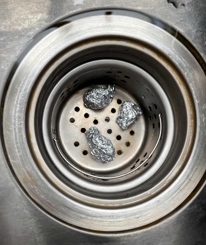 我现在的做法很简单,用家里剩下的锡纸,随手搓几个不规则的小球,直接丢进滤网位置。